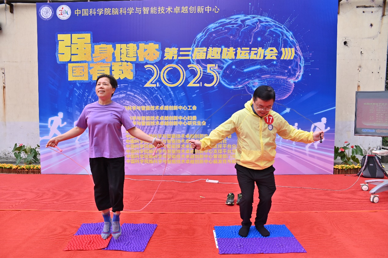 为深入贯彻落实全民健身战略,营造积极向上、团结奋进的创新文化氛围,10月16日下午,中国科学院脑科学与智能技术卓越创新中心举办了2025年“强身健体 强国有我”第三届趣味运动会。本次活动由中心工会主办,妇委、研究生会协办,健身协会、音悦社、支撑平台分工会、支撑平台党支部、管理部门党支部、脑发育与脑疾病第二党支部共同承办。中心党委书记、副主任孙衍刚主持开幕式,并宣布本届趣味运动会正式开始。