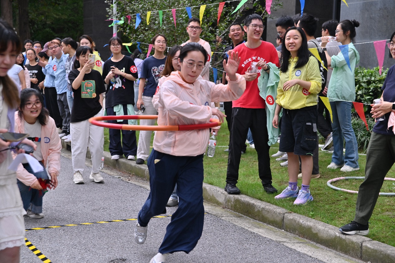 趣味接力比赛环节包含俯卧撑、指压板跳绳、踢毽子、呼啦圈前进和投壶五项挑战,将趣味性、竞技性、协作性巧妙结合。选手们意气风发,各显神通,以速度拼距离,几乎每支队伍都在项目里拼出了新高度。