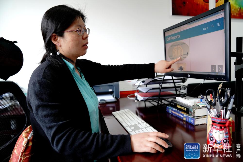 4月24日,许晓鸿研究员在办公室介绍最新科研成果。新华社记者 张建松 摄