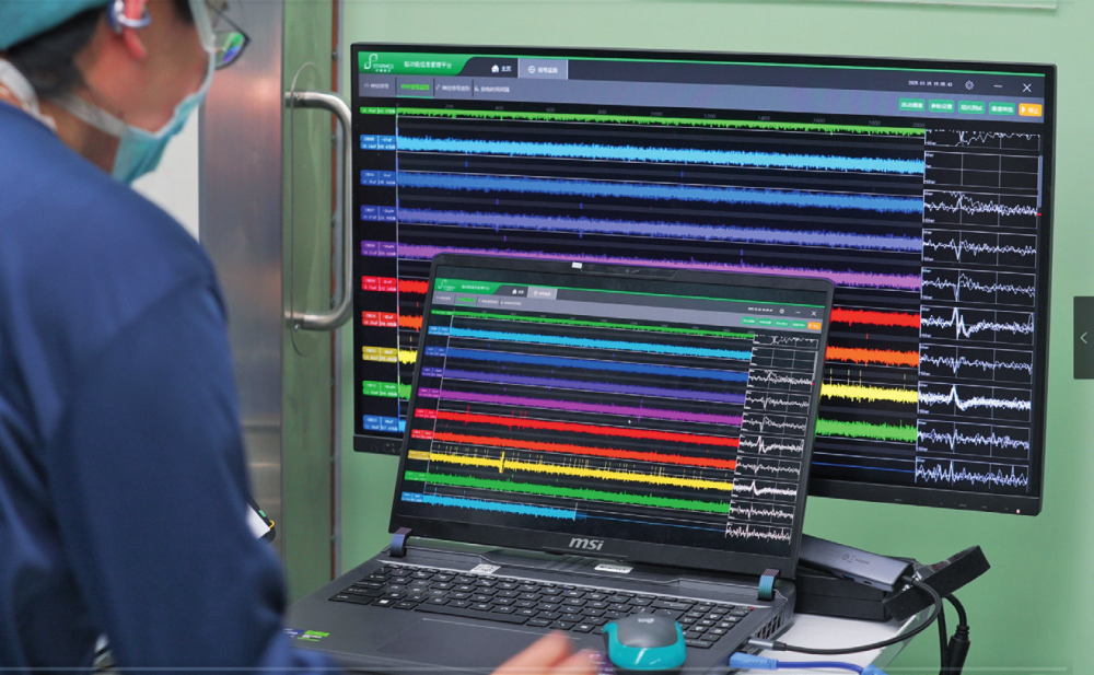 在复旦大学附属华山医院脑机接口前瞻性临床试验手术现场,采集到了高质量的单神经元信号 受访者供图 既踩