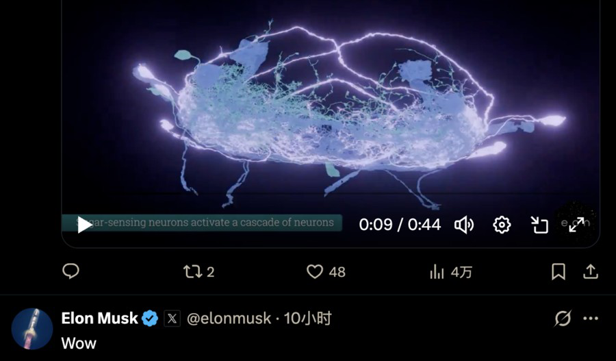 屏幕上,一只“赛博果蝇”正略显笨拙地觅食、梳毛。正是这只来自硅谷初创公司Eon Systems的果蝇引发了科技圈热议,连埃隆·马斯克都在社交媒体上对此表示惊叹。