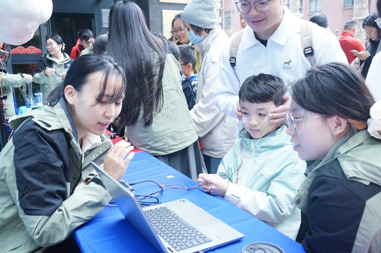 11月8日,一场别开生面的“脑智擘未来”科普市集在脑智卓越中心岳阳园区开启。“力量召唤闪电”实验让参与者通过手臂发力触发“云朵闪电”,直观感受肌电信号的产生与传导;“脑电对抗”与“脑电协作”通过测量注意力与脑波协同,以竞赛与协作方式揭示大脑在不同认知状态下的活动模式;“眼控小车”项目则借助眼动信号控制车辆行进,展现人机交互的前沿应用。这些互动项目将高深的神经信号机制转化为趣味体验,让公众在动手参与中走近科学,领悟探索的魅力,科学由此实现了从“高大上”到“接地气”的转化,从书本和实验室走向公众,构建起公众主动参与的互动生态,“科学离我很近”成为现场最直观的感受。
