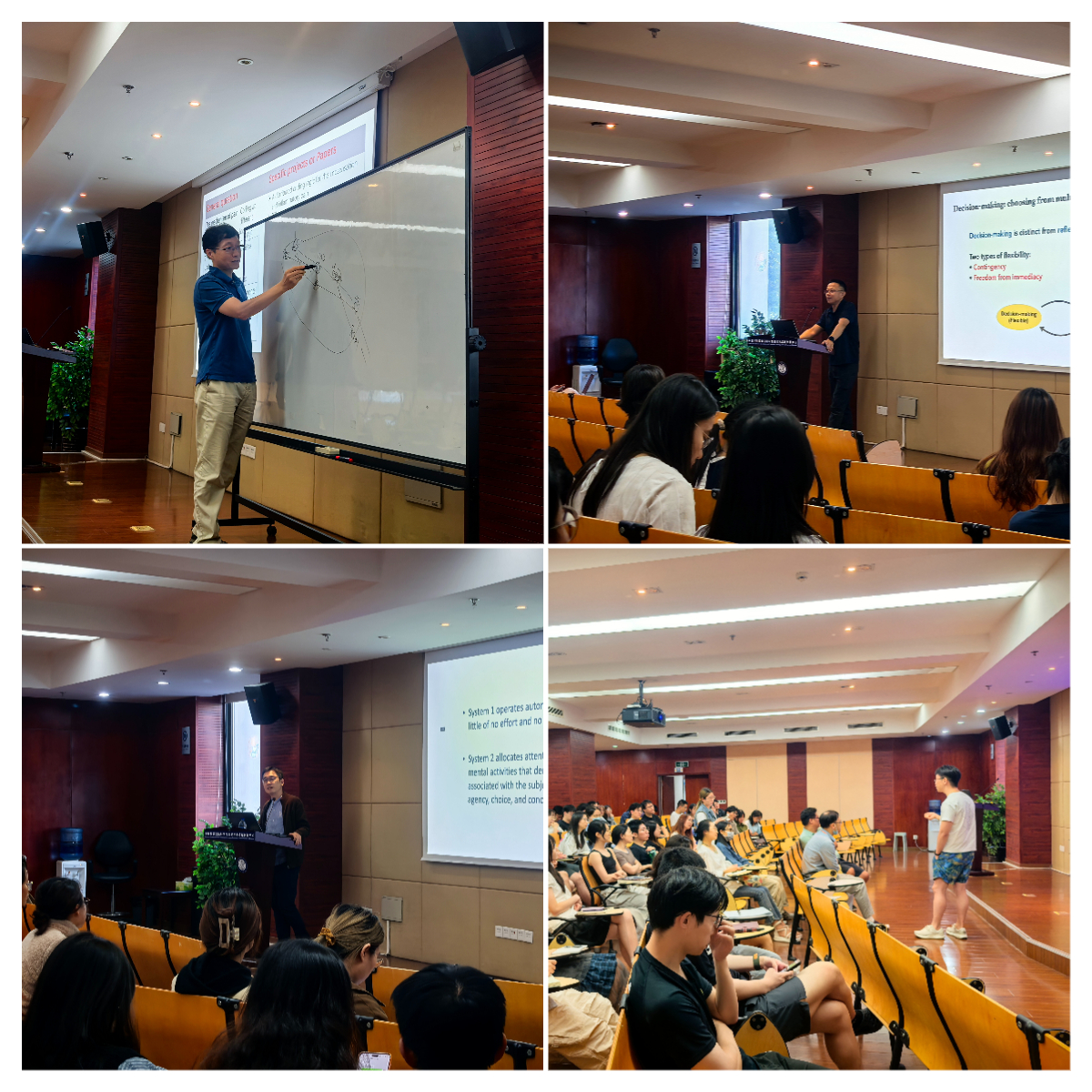 本期课程共包含9个专题模块,吸引了85名同学选课学习。每个模块邀请三位相关领域的专家围绕同一主题展开多角度讲授,并在每节课后设置30分钟集体讨论,促进师生深度交流。课程期末以小组协作形式进行课题设计与汇报,学生组成10个小组,围绕“最值得深入探索的重要研究方向”提出完整科研方案。汇报结束后,由授课教师评选出最佳课题设计前三名。