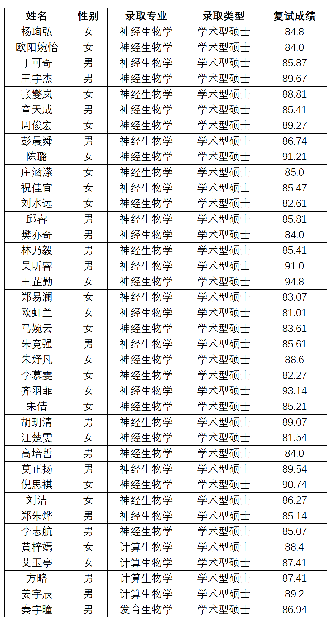 中国科学院脑科学与智能技术卓越创新中心2026年招收推荐免试硕士生拟录取名单公示