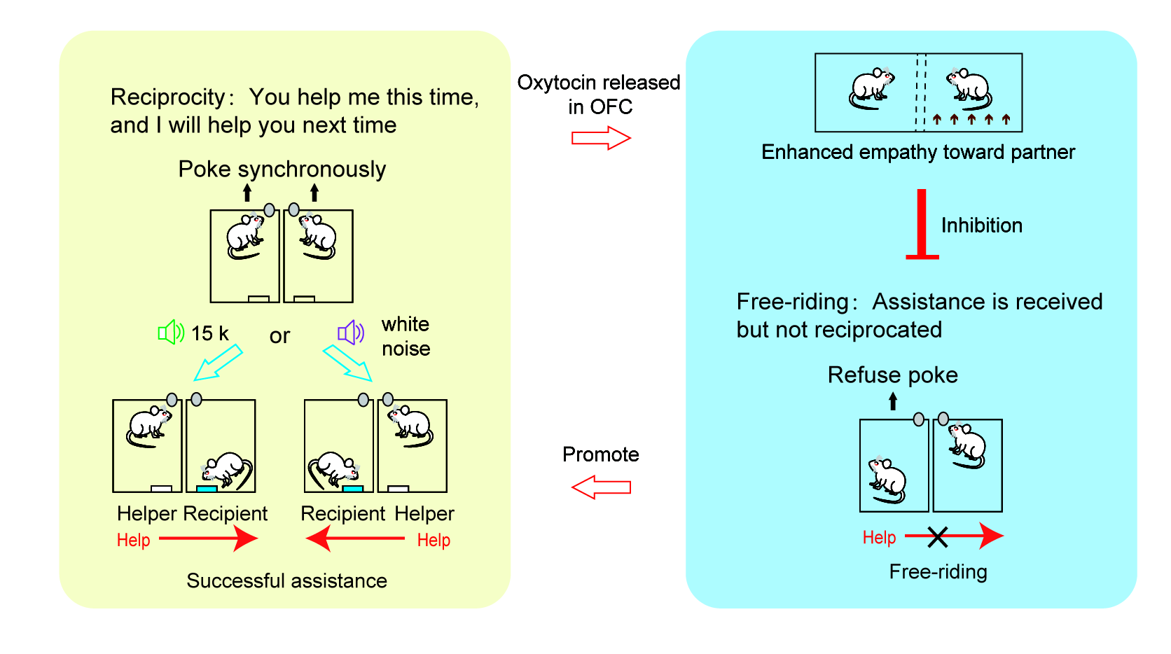 2025年8月26日,《Science bulletin》期刊在线发表了题为《Oxytocin-mediated empathy internally facilitates cooperative behaviors in rats》的研究论文。该研究由中国科学院脑科学与智能技术卓越中心王佐仁研究组联合北京大学IDG麦戈文脑科学研究所李毓龙研究组共同完成。团队建立了全自动化的大鼠互惠合作范式,首次在无外部惩罚条件下发现催产素介导的共情(同理心)提升能够显著减少“搭便车”行为,使互惠合作长期保持稳定,这一研究成果为揭示哺乳动物复杂社会行为的内在动机机制提供了重要实验依据。
