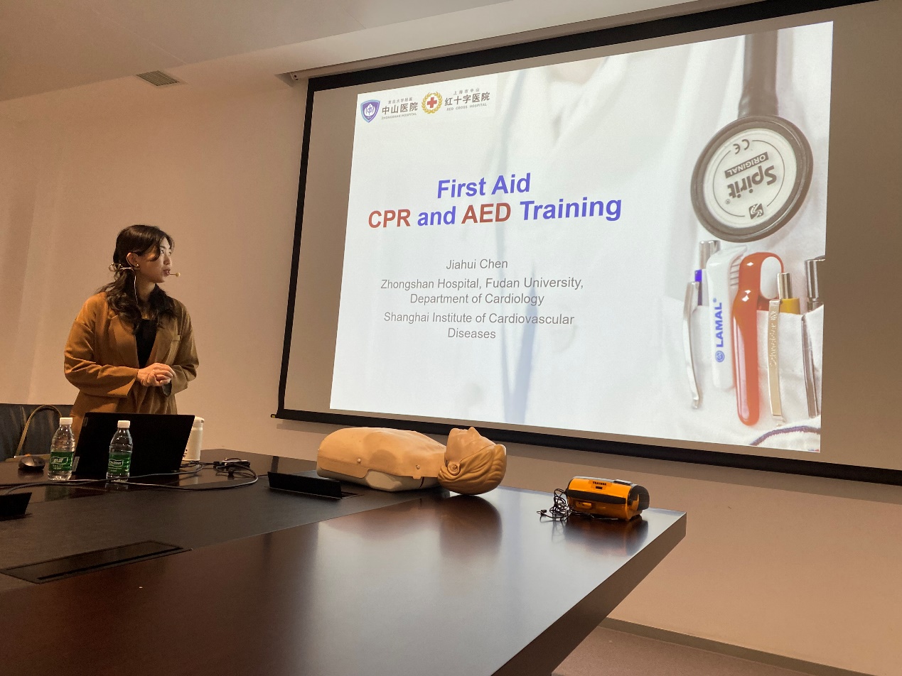 培训特邀复旦大学附属中山医院心内科主治医师陈佳慧担任主讲。培训伊始,灵长类研究分工会委员Conchy和路雅莉,强调了掌握急救知识在科研工作与日常生活中的重要意义。培训中,陈佳慧医师首先通过详实数据介绍了心源性猝死的发生概率与严峻现状,深入阐释了学习急救知识的必要性及“黄金四分钟”救援理念。随后,她系统清晰地讲解了心肺复苏(CPR)的标准操作流程,以及自动体外除颤器(AED)的使用方法与注意事项。