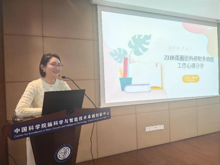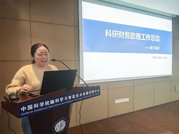 在表彰环节,会议对2025年度荣获科研财务助理“卓越奖”“优秀奖”及“进步奖”的优秀个人进行了隆重表彰。获奖者王怡宁、王悦、魏佳晨、闫玺镁四位同志受邀分享了她们在科研财务助理工作中的宝贵经验与心得体会。她们以高度的责任感和敬业精神,无私分享了工作中的实用技巧与方法,充分展现了脑智卓越中心科研财务助理团队的专业素养与风采,赢得了与会人员的阵阵掌声。