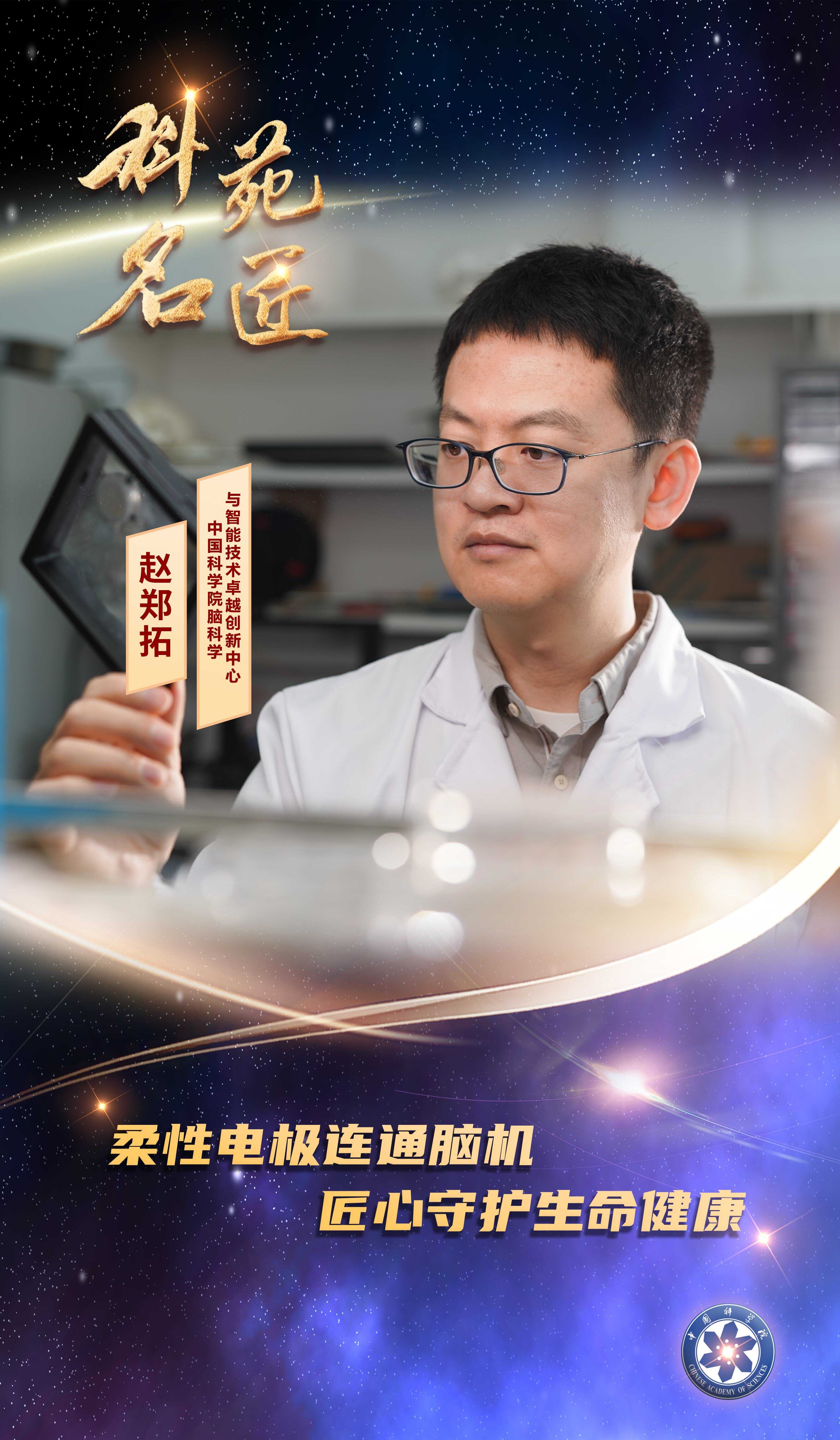 赵郑拓长期致力于植入式脑机接口与柔性神经界面技术研究,探索脑科学与神经工程领域关键技术难题。他突破超柔性高密度神经界面技术,填补国内核心器件空白,主持研制全球尺寸最小、柔性最强的植入式神经电极阵列,电极截面积仅为国际同类产品(Neuralink)的五分之一,柔性超其百倍。他带领团队开发国内首个进入临床阶段的全植入式脑控系统,使中国成为全球第二个实现该技术临床应用的国家,引领我国侵入式脑机接口技术从跟跑向领跑跨越。该系统作为国内唯一获批创新医疗器械"绿色通道"的系统,已帮助高位截瘫患者实现意念控制轮椅、机械臂、机器人等复杂操作,让"重新触摸世界"的愿景照进现实,展现出中国科学家在脑科学前沿领域的创新活力与使命担当。