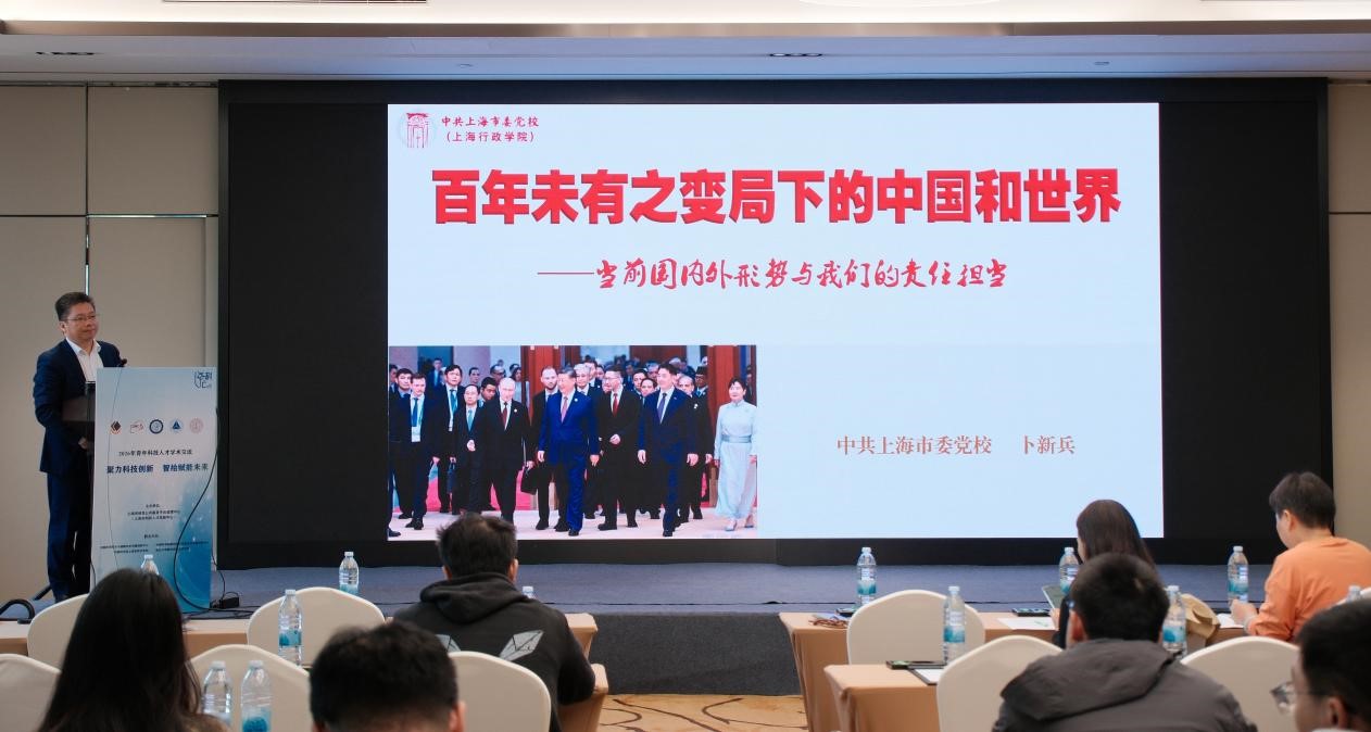 上海市委党校卜新兵教授作了题为《百年未有之变局下的中国和世界——当前国内外形势与我们的责任担当》的专题报告。卜教授以宏阔的国际视野和深刻的战略分析,阐释了当前国内外形势的复杂变化,号召广大科研工作者胸怀“国之大者”,厚植爱党爱国情怀,主动把握百年变局中的战略发展机遇,凝心聚力、笃行实干,以奋斗之姿扛起科研报国重任。