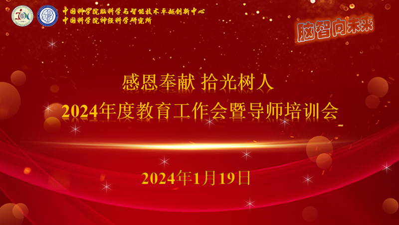 为深入学习贯彻党的二十大精神和习近平总书记关于教育工作的重要指示,全面落实研究生导师立德树人职责,推进研究生教育高质量发展。1月19日下午,中国科学院脑科学与智能技术卓越创新中心(以下简称“脑智卓越中心”)在405报告厅举办了2024年度“感恩奉献 拾光树人”教育工作会议暨导师培训。参加此次会议的有中心学术主任蒲慕明院士、领导班子成员以及全体研究生导师。会议由研究生教育处处长何杰研究员主持。